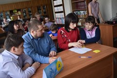 Знатоки детской литературы собрались сегодня в городской детской библиотеке на традиционный городской конкурс "самая читающая семья". Участниками игры стали пять команд, в каждой капитаном был четвероклассник − таковы правила конкурса. Итак, за победу боролись семьи: Лизы Токаревой (гимназия), Полины Бычковой (школа № 2), Лизы Хилининой (школа № 4), Саши Сергеева (школа № 5), Максима Фролова (школа № 6).