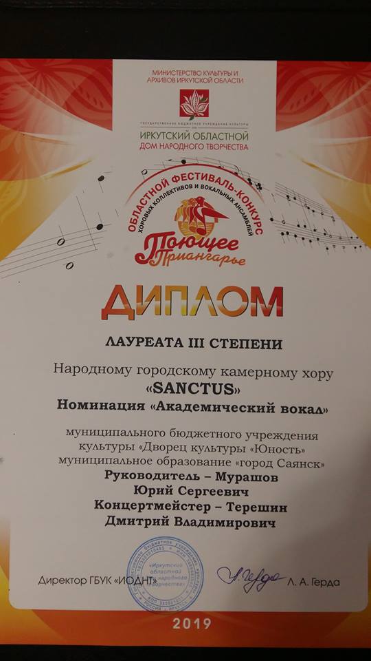 Саянск на конкурсе-фестивале представляли творческие коллективы Дворца культуры «Юность». Народный фольклорный ансамбль «Лучинушка» (руководитель Виктор Бондарь) в номинации «Народный вокал. Ансамбли» стал победителем. Народный городской камерный хор «Санктус» (руководитель Юрий Мурашов) в номинации «Академический вокал» стал лауреатом третьей степени.