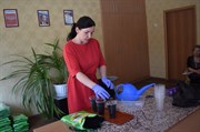 Сам мастер-класс по теме встречи давала работник Саянского благотворительного фонда Лариса Синицына. Сама увлеченный, ищущий, грамотный цветовод, она на примере показала, как правильно черенковать веточки кустарника снежноягодника. Как декоративное растение, он очень красив и зимой, и летом. Благодаря ее технологии, веточки очень скоро дадут листочки и укоренятся. Кроме того, она показала, как правильно высевать семена на рассаду. Женщины, десятилетиями выращивающие растения, тем не менее, с интересом слушали и записывали слова мастера. Некоторые признали, что представленный способ – простой и эффективный – они увидели впервые.