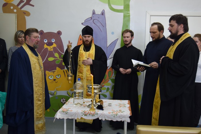 После торжественного разрезания красной ленточки гости прошли внутрь. Комнату освятил благочинный Саянского церковного округа иерей Иоанн Борисюк. Он пожелал участникам этого доброго дела долгих лет жизни. Уже после обеда комнату посетили первые непоседы. Восторгу и радости ребят не было предела.