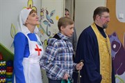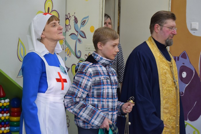 Сегодня на торжественном открытии комнаты присутствовали мэр Саянска Олег Боровский, руководство саянской городской больницы, представители саянской епархии и службы «Милосердие», действующей при Благовещенском храме, и, конечно же, авторы проекта – сотрудники саянского благотворительного фонда "Забота".