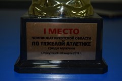 Наш город представляли десять спортсменов спортивной школы Саянска. Они занимаются в секции тяжелой атлетики у тренеров Сергея Косарева, Владимира Любимова и Виктора Рожкова. В личном первенстве в разных весовых категории золотые награды взяли наши спортсмены: Андрей Чагочкин, Денис Кузьменко, Вадим Евстратов, Виктор Рожков, Сергей Евстафьев. Большинство спортсменов тренирует Сергей Косарев. Кроме того, Денис Кузьменко, Виктор Рожков и Сергей Евстафьев установили несколько рекордов Иркутской области. Эти же спортсмены будут представлять наш город на чемпионате Сибирского Федерального округа. На церемонии награждения Сергею Евстафьеву вручили удостоверение мастера спорта.