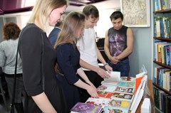 О новинках рассказала специалист библиотеки Татьяна Павлова. В частности она представила старшеклассникам книги самого молодого автора – Михаила Самарского. Свою первую книгу он написал в 12 лет, когда автору исполнилось 13 лет, его книгу уже напечатали. В саянской библиотеке более десяти книг этого автора. Они выходят в серии «Приключения необыкновенной собаки» и повествуют о человеке, его месте в этом мире, о милосердии, добре, причем глазами собаки-поводыря. В серии «Радуга для друга» автор пишет о подростках, их проблемах, увлечениях, радостях, дружбе, любви, отношении к старшему поколению.