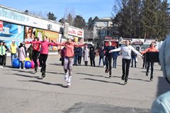 В полдень на городской торговой площади собрались любители активного отдыха. К акции присоединились и воспитанники коррекционной школы-интерната. Под громкую зажигательную музыку тренеры фитнес зала представили свои направления, после чего пригласили присоединиться всех желающих. Множество зрителей поддержало спортсменов − бодрая, веселая зарядка подняла настроение и участникам, и прохожим.