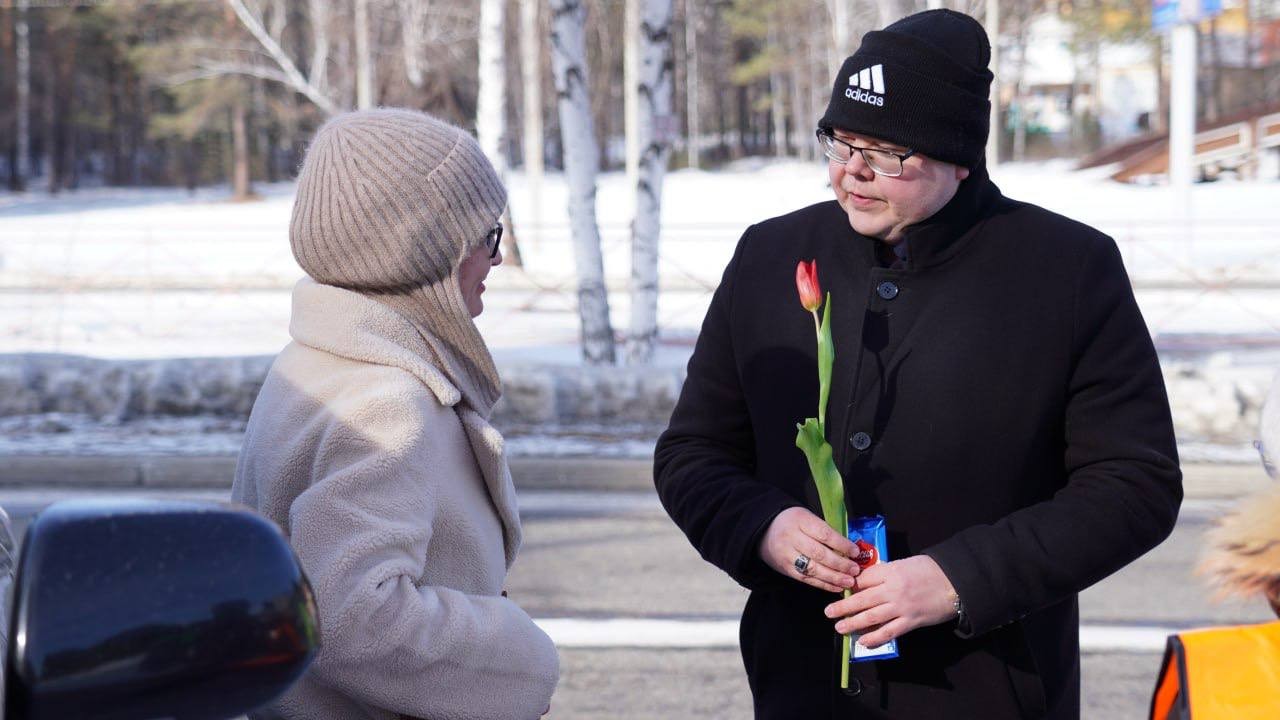 Женщины тоже не остались без внимания. Яркие открытки и сладкие подарки им вручали активисты «Движения Первых» и юнармейцы, которые в этот день тоже решили организовать акцию в честь самого весеннего праздника.