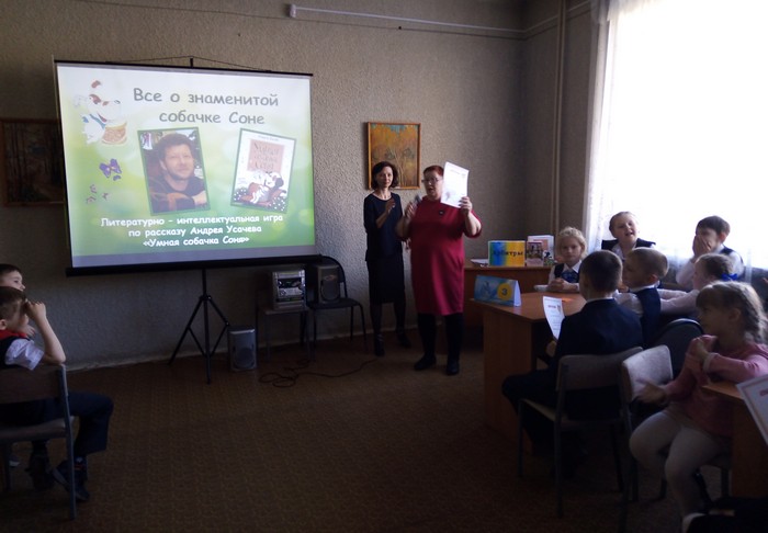 Финальная игра интеллектуального марафона в текущем учебном году прошла в четверг, 11 апреля, в городской детской библиотеке. За звание победителя боролись первоклассники всех школ города. На литературно-интеллектуальной игре ребята показали свои знания замечательной книги Андрея Усачева «Умная собачка Соня». Книга – это веселые и увлекательные рассказы о королевской дворняжке. Соня − это маленькая, умная, очаровательная и очень рассудительная собачка. С ней часто случаются забавные истории, но Соня никогда не унывает − ведь если хорошенько подумать, можно найти выход из любой ситуации.