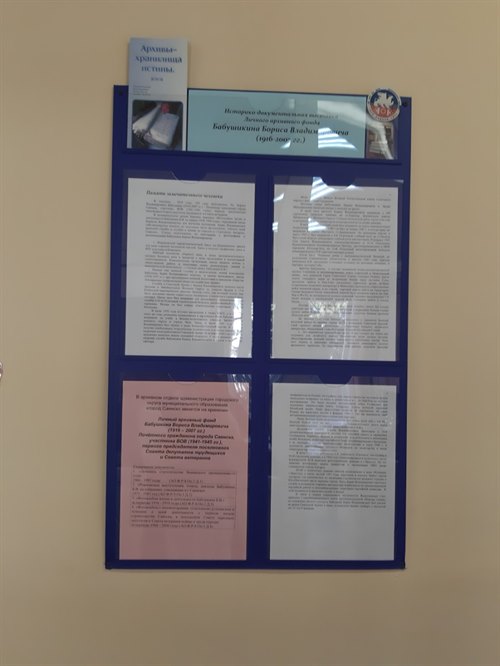 В городском архиве Саянска открыта историко-архивная выставка личного архивного фонда Бориса Владимировича Бабушкина – почетного гражданина города Саянска, ветерана Великой Отечественной войны, первостроителя города Саянска, первого председателя саянского поселкового Совета, первого председателя городского Совета ветеранов.
