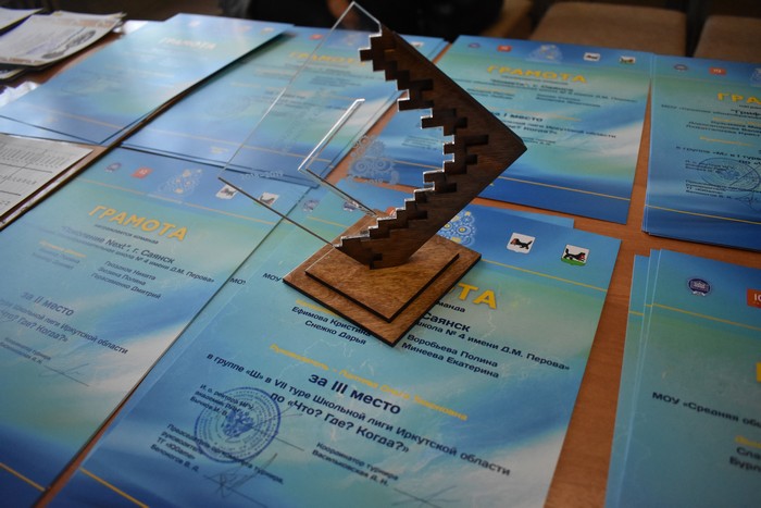 В городской детской библиотеке состоялось награждение участников городской площадки молодежного кубка мира в игре "Что? Где? Когда?". В сезоне 2018-2019 учебного года в подгруппе школьной лиги Иркутской области играли 25 саянских команд. Интеллектуалы прошли семь игр, по числу правильных ответов команды занимали свой рейтинг в области. Надо отметить, что все команды из школы № 4 и только одна − "Друзь.Я" − из 6 "А" школы № 3. Дебют третьей оказался удачным − в городском рейтинге они заняли второе место.