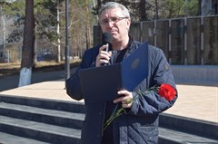 От имени главы города Олега Боровского к участникам митинга обратился заместитель мэра по социальным вопросам Александр Ермаков. Он отметил, что саянцы совершили героический подвиг. «Снова весна, и снова наступил тот день, когда мы вспоминаем о жертвах Чернобыля, говорим спасибо ликвидаторам», − сказал Александр Владимирович. Он пожелал отважным горожанам благополучия и здоровья. Александр Ермаков также вручил благодарственное письмо руководителю общественной организации Владимиру Пироженко за подписью мэра города Саянска. «Благодарим вас за активную жизненную позицию, за помощь и взаимопонимание», − было сказано в нем.