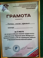 Кроме саянцев собрались 11 команд из Черемхова, Иркутска, Усолья, Шелехова, Байкальска, Кутулика, поселка Среднего. На торжественном построении старшеклассники вступили в ряды юнармии, приняли присягу.