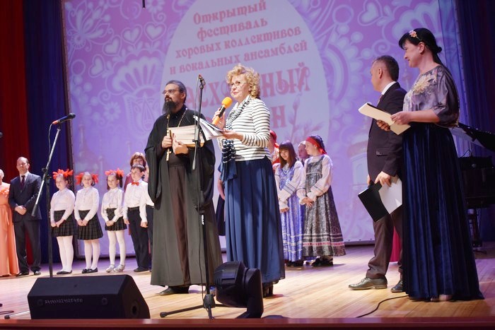 Сегодня в ДК "Юность" прошел открытый фестиваль хоровых коллективов и вокальных ансамблей "Пасхальный перезвон", организованный управлением культуры и Саянской епархией. Участников и зрителей приветствовали заместитель мэра города Александр Ермаков и иерей Владимир Данилко.