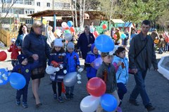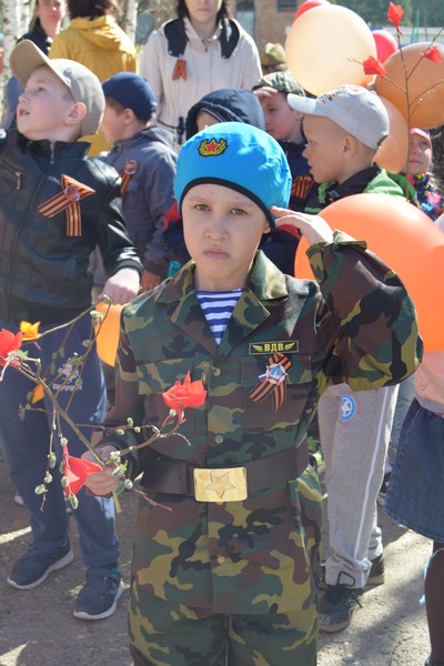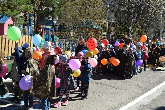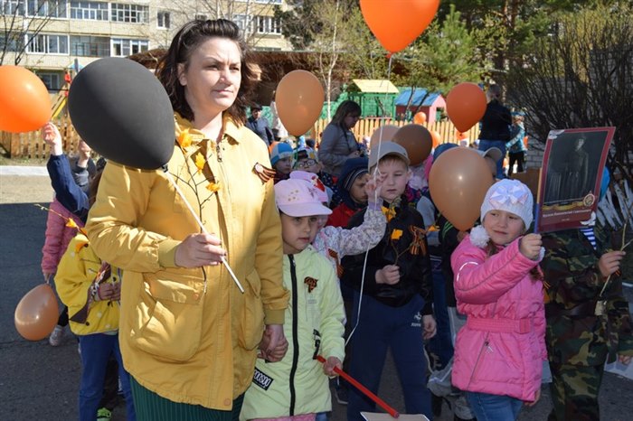 Настоящий праздничный парад, посвященный Дню Победы, состоялся в детском саду № 27 «Петушок» накануне 9 Мая. Торжественное шествие дошколят и педагогов проходит здесь во второй раз. В колоннах вокруг детского учреждения прошли ребята, родители и воспитатели. Участники парада несли воздушные шары, цветы, портреты родственников-ветеранов.