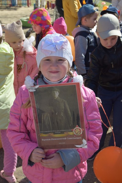 По традиции колонны дошкольников замыкают педагогические работники – люди творческие и инициативные. Накануне они провели большую работу с ребятами и родителями. Не удивительно, что дети знают имена героических родственников. Они с гордостью несли портреты своих прадедов