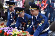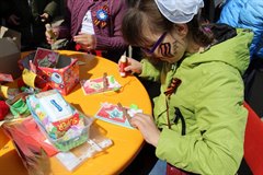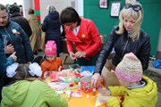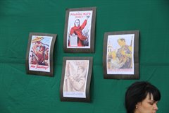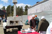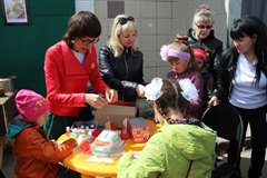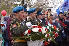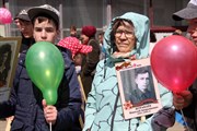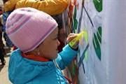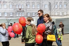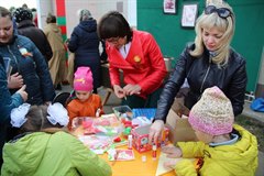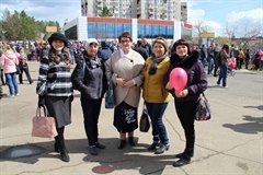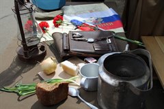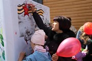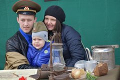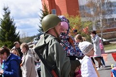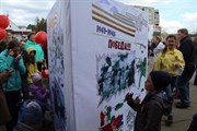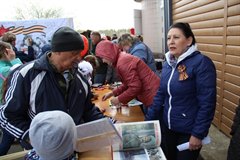 На городской площади работники культуры организовали арт-площадки. На больших холстах желающие "рисовали Победу", за цветные маркеры взялась не только детвора, но и взрослые с увлечением выводили военную технику, звезды и бабочек. У инсталляции "На границе" и "В землянке на передовой" было многолюдно – дети примеряли каску и плащ-палатку, в которых фотографировались у пограничного столба. А за стол "землянки", на котором располагалась карта боевых действий, краюха хлеба с луком, усаживались семьями. Много было желающих научиться мастерить открытку ветерану и оформить треугольником письмо – библиотекари показывали как это делать.