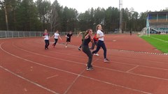 На заключительном этапе соревнований девушки и юноши соревновались в легкоатлетическом забеге.