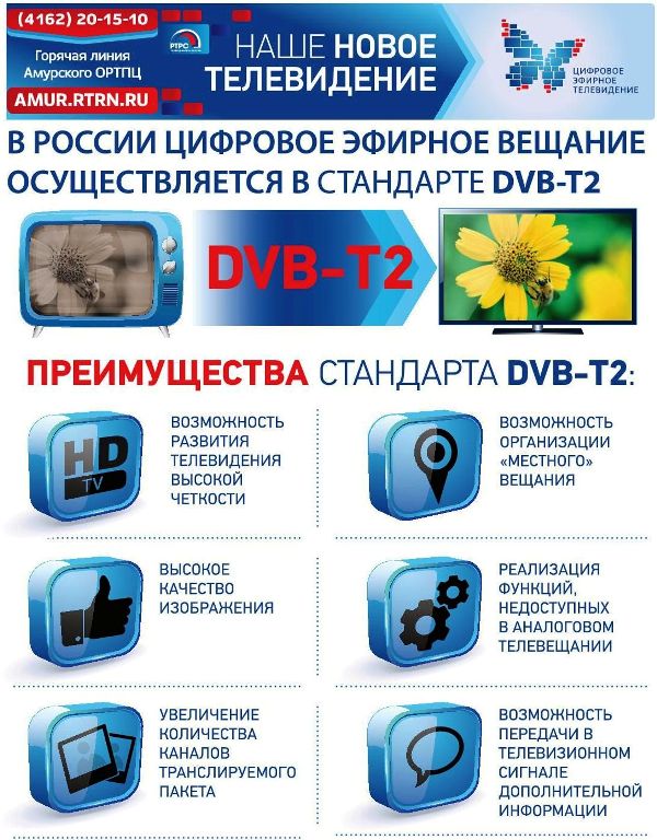 Для приема бесплатного цифрового эфирного сигнала необходимы: антенна дециметрового диапазона (коллективная или индивидуальная, наружная или комнатная) и телевизор, поддерживающий стандарт вещания DVB-T2 (выпущенный после 2013 года, либо специальная телевизионная приставка к старому). Необходимое оборудование можно приобрести в магазинах, торгующих электроникой.