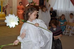 В детском саду приветствуется театральное искусство. С детьми занимается воспитатель Лариса Сафонова. На открытии площадки педагог и воспитанники дошкольного учреждения показали для гостей музыкально-литературную композицию «Минувших лет живая память». Театрализованное действо было посвящено недавнему празднику – Дню победы. По сценарию педагог перевоплотилась в образ бабушки, рассказывающей о Великой Отечественной войне своим внукам. Ее рассказ сопровождался стихотворениями и хореографическими номерами дошколят и педагогов. Композиция растрогала всех. Зрители долго аплодировали артистам.