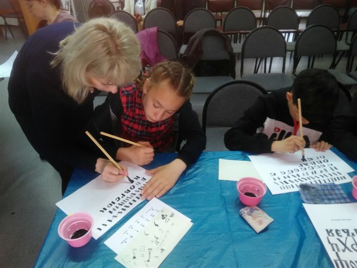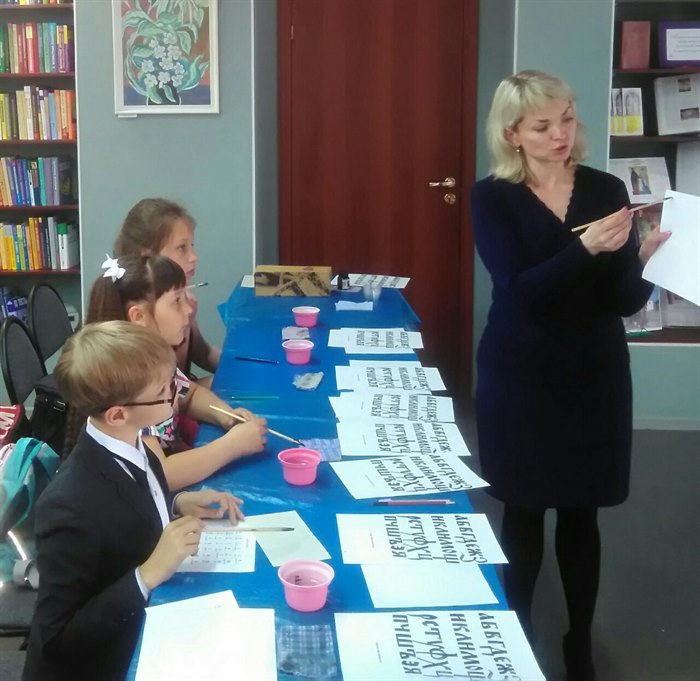 В читальном зале городской библиотеки специалисты музея провели мероприятие, посвященное Дню славянской письменности и культуры "Славянские просветители". Мероприятие началось с приветственного слова настоятеля Благовещенского храма Владимира Данилко. Далее ребята посмотрели презентацию о возникновении славянской письменности, познакомились с древними азбуками: глаголицей и кириллицей, выполняли задания по теме беседы: писали слова, используя буквы глаголицы, искали недостающие буквы древнеславянской азбуки, отвечали на вопросы по теме беседы. Завершилось мероприятие проведением мастер-класса по обучению основам древнерусского письма "Устав и полуустав".