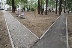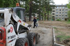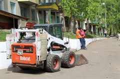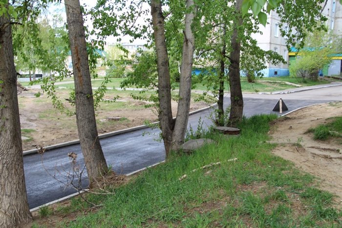 Двор дома №11 в микрорайоне «Октябрьском» облагораживает другая иркутская фирма – «РУСМВАД». В их задачу входит обустройство пешеходных дорожек, частичный ремонт проезжей части и обустройство парковки. Эта же организация ведет работы во дворе дома №65 микрорайона Юбилейного. На этом объекте они вышли на завершающую стадию обустройства пешеходной дорожки и автомобильной парковки – асфальтирование.