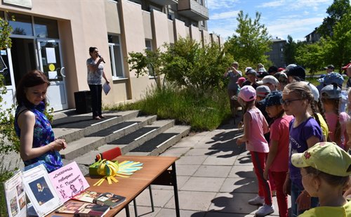 На площадке у городской центральной библиотеки сегодня шумно и весело – сотрудники библиотеки организовали Пушкинский праздник для воспитанников пришкольных лагерей. В течение дня гостями библиотекарей стали несколько групп мальчишек и девчонок. Начиналось мероприятие с рассказа о поэте.Татьяна Павлова знакомила ребят с интересными фактами из жизни Пушкина, затем предлагала детям рассказать стихотворения поэта. Ребятня с удовольствием читала стихи, чаще всего – «У лукоморья дуб зеленый».