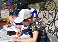 После детям предлагались интересные площадки. К примеру, на одной из них нужно было ответить на вопросы викторины, на другой – собрать «литературную цепочку» из строчек стихотворений. Мальчишки с увлечением раскрашивали картинки из произведений Пушкина, а девчонки старательно мастерили закладки для книг. Каллиграфические навыки предлагали проявить детям на площадке «Письмо Пушкину». Написать строки нужно было настоящими перьями и чернилами. Ребята такого орудия письма ни разу не видели, попробовав писать им, они поняли, что это совсем не просто. Многие ребята заинтересовались книгами, представленными на выставке.