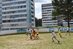 Сегодня хоккейный корт детского спортивного клуба «Искра» превратился в жаркую футбольную арену – здесь проходили завершающие матчи первого круга турнира дворовых команд по мини-футболу. В этом году за победу соревнуются юные любители футбола 2007 года рождения и младше. Мальчишки играют два тайма по 10 минут – за это время на поле происходят настоящие сражения с массой эмоций: от огорчения до ликования. Равнодушных нет ни на поле, ни в рядах зрителей.