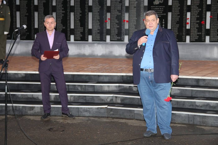 − В тот страшный день, 22 июня, перевернулась жизнь миллионов людей. Мощная, жестокая и беспощадная сила обрушилась на нашу страну 78 лет назад, − сказал мэр города Олег Боровский. – И сегодня мы собрались почтить память тех, кто грудью встал на защиту нашей Родины. На Стене памяти более шестисот имен саянцев, которые отстаивали мир на полях битвы, в тылу, помогая фронту долгие четыре года войны. Благодаря подвигу наших великих отцов и дедов мы живем под мирным небом. И это самое главное. Вечная им память и низкий поклон.