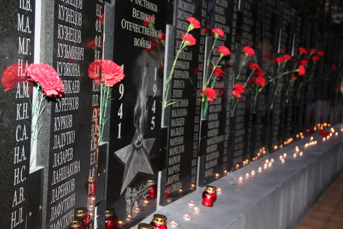 Десятки свечей памяти зажглись сегодня в сквере ветеранов в знак общей скорби и в память о жертвах войны, кто своими подвигами на фронте и героическим трудом и лишениями в тылу завоевали великую Победу, которую мы унаследовали как бесценный дар. «Свеча памяти» − это символ глубокой благодарности этим людям. Международная акция, участники которой с 2009 года ежегодно накануне Дня памяти и скорби зажигают свечи в честь 27 миллионов погибших в Великой Отечественной войне и всех павших в боях за Родину проходит и в нашем городе.