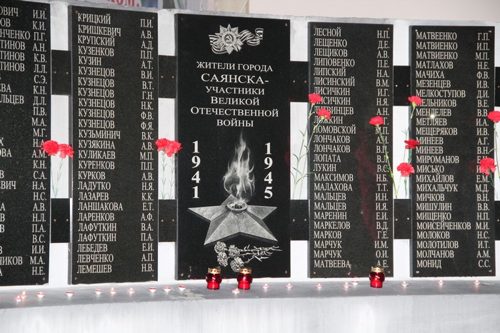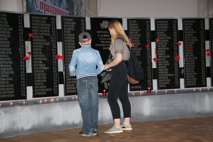 Саянцы, собравшиеся на митинг памяти о погибших саянцах, всех воинах-освободителях, зажгли свечи, возложили цветы к мемориалу, присоединившись к важной общенародной акции солидарности.