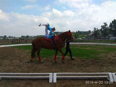 Приняв участие в соревнованиях по вольтижировке, на следующий день, 23 июня, саянский наездник Олег Ханин с лошадью Кимберли успешно выступил в конкуре на Кайском кубке и занял первое место.