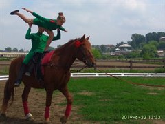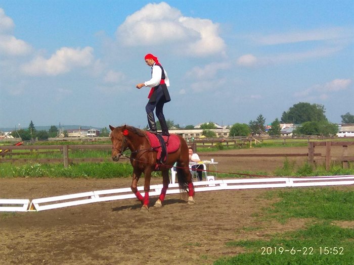 Саянский вольтижер Олег Ханин показал высокий уровень мастерства в исполнении гимнастических и акробатических упражнений на лошади по кличке Буран и занял почетное второе место среди взрослых. В юношеской подгруппе все призовые места взяли наши спортсмены. Валерия Ерохина показала высший результат и заняла первую строчку, Арина – втору, Полина Огнева – третью. Средняя детская группа тоже проявила себя лучшим образом, также заняв все ступени пьедестала почета. София Ерохина стала первой, София Соколова – второй, а Ольга Климова – третьей.