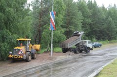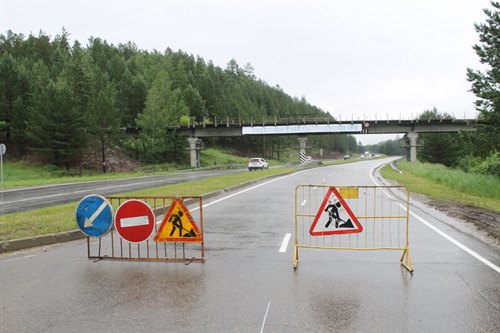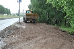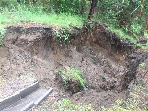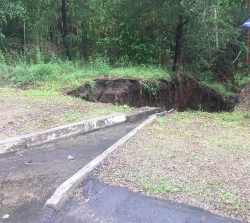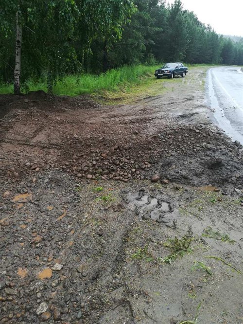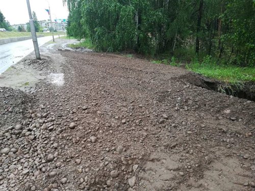 Затяжные дожди спровоцировали подмыв оврага у дороги в районе подъема на Саянск. К устранению проблемы приступили оперативно.