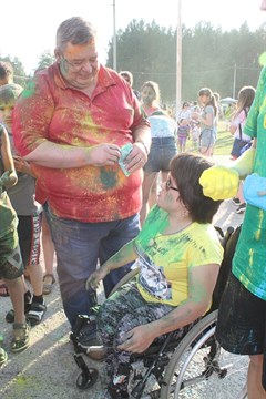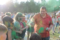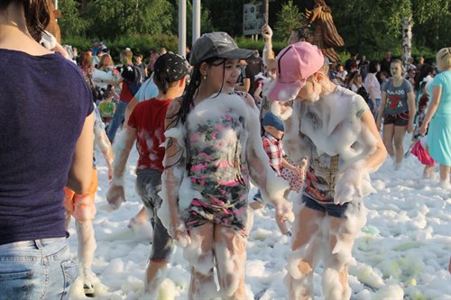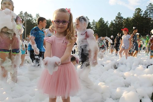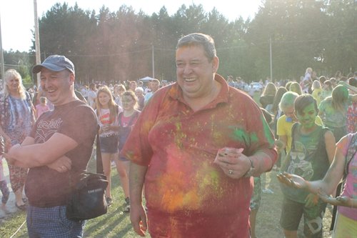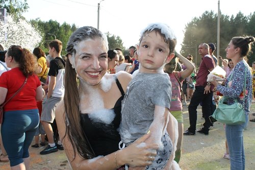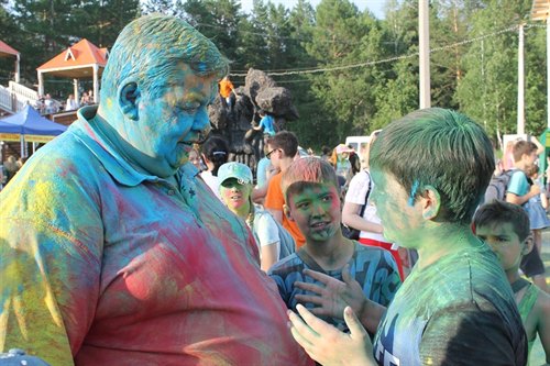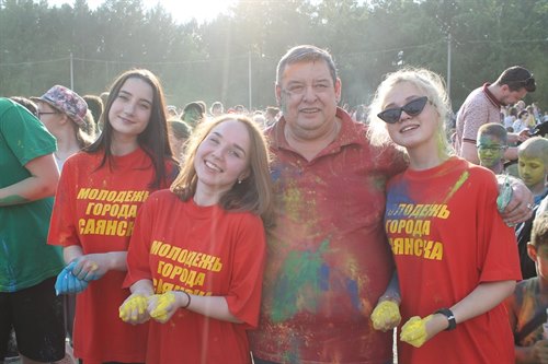 Всегда в самой гуще, будь то море красок или пенный душ, к неизменному восторгу малышей и молодежи – мэр Саянска Олег Боровский. Его можно осыпать цветным красочным дождем и даже получить в ответ такую же щедрую порцию краски, а потом в таком виде сфотографироваться, тем более, что в этом году в инстаграм объявлен конкурс на лучшее фото с мэром.