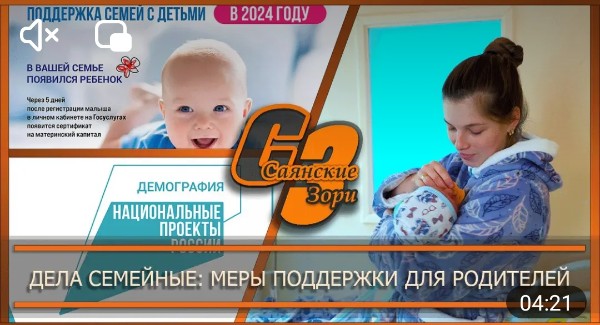 В настоящее время в России реализуется федеральная кампания «Финансовая поддержка семей с детьми» в рамках национального проекта «Демография». О мерах поддержки семьям с детьми рассказала начальник отдела реализации прав на меры социальной поддержки Управления социальной защиты и социального обслуживания населения по городу Саянску Инна Чупрова.