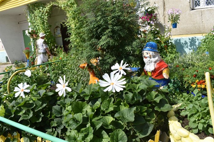 О дворе дома № 11 микрорайона Строителей газета «Саянские зори» рассказывает ежегодно – от подъезда, где живет Людмила Токарская, нельзя глаз оторвать. Недаром жительница города неоднократно становилась победителем городского конкурса на лучшее озеленение двора. Нынче дверь в подъезд обрамляет арка из вьющихся растений, на фасаде дома – кашпо с пышными цветами, малые формы утопают в зелени, каждый сантиметр ухожен с необычайной теплотой. Как рассказала ее соседка Татьяна, Людмила Токарская занимается украшением участка сама, каждый год добавляет новые элементы. К примеру, в этом году пышную зелень отцветших незабудок украсила самодельными ромашками – ко Дню любви, семьи и верности. Все жильцы подъезда, да и дома с заботой относятся к труду соседки, кто-то выносит комнатные цветущие растения, кто-то привозит саженцы.