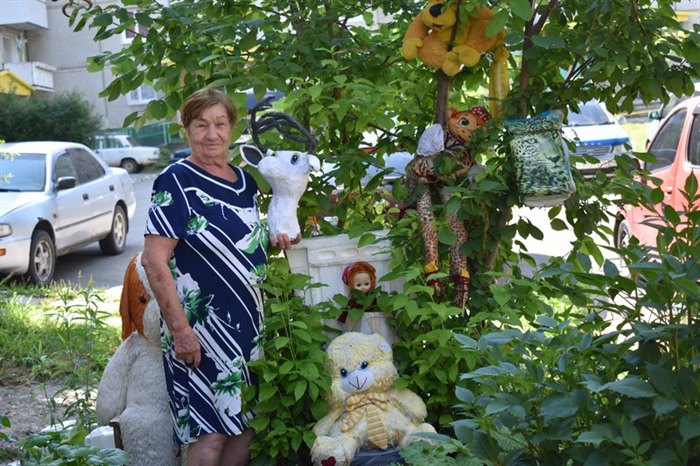 В этом году мастерица решила выполнить композицию из мягких игрушек. Соседи не просто с интересом наблюдают за преображением уголка, но и сами приносят игрушки, полагаясь на фантазию соседки. Александре Васильевне нравится, что ее клумба привлекает внимание прохожих, а уж от детворы нет отбоя. Радует горожан двор и зимой – пенсионерка из снега ваяет Деда Мороза со Снегурочкой. В один год в их компании появляется Емеля на печи, в другой – снеговик.