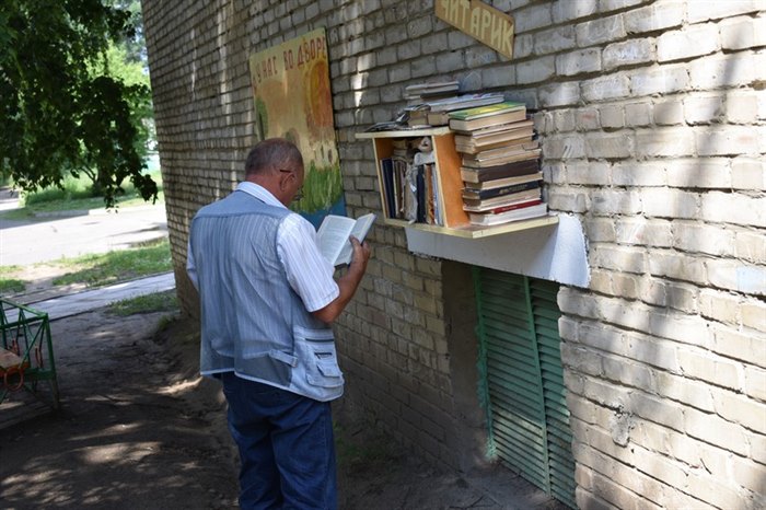 Читательский уголок «Читарик» организован жителями во дворе дома № 7 микрорайона Строителей. На импровизированную полку одни соседи книги приносят, другие – берут. Такой соседский книгообмен существует уже второй год. Здесь же установлен стол с шахматной доской и стульями со всех сторон, по вечерам, наверняка, он не пустует.