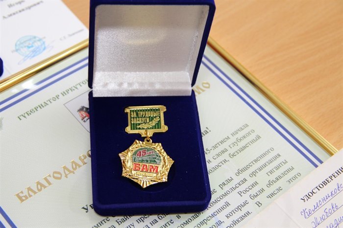 Олег Валерьевич от имени губернатора Иркутской области вручил Благодарственное письмо Любови Колесниковой. Участники стройки получили памятные медали «45 лет Байкало-Амурской магистрали» от общественной организации и памятные знаки «За трудовые заслуги. 45 лет БАМ», с удостоверениями, подписанными губернатором Иркутской области Сергеем Левченко. В числе награжденных люди разных профессий, имеющие несколько десятков трудового стажа – бывшие путеукладчики, медицинские сестры, монтажники, машинисты.