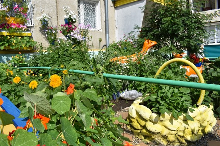 Несколько лет назад созидательницы дворовой красоты второго дома микрорайона Солнечного впервые приняли участие в городском конкурсе на лучшее цветочно-декоративное озеленение территории Саянска и победили в номинации «Лучшая клумба». В 2013-м также получили первое место в этой же номинации, а в 2015-м двор дома № 2 микрорайона стал лучшим в номинации «Лучшая дворовая детская площадка». Управляющая компания «Уют», обслуживающая дом, всегда откликается на просьбы жителей, помогает плодородной землей.