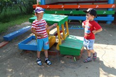 Каждый детский сад по своему старается обустроить для ребят зоны комфортного летнего отдыха. Не забывают педагоги и о знакомстве ребят с правилами дорожного движения, в каждом учреждении оборудованы специальные площадки с разметкой и дорожными знаками.