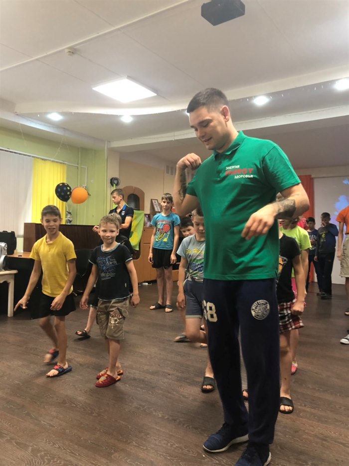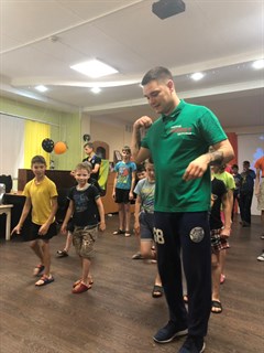 Молодогвардеец и фитнес тренер Денис Белокопытов провел для мальчишек и девчонок зарядку, расширенную теоретическими вопросами. Он показал упражнения на разные группы мышц, рассказал об оздоровительном действии на организм подростков тех или иных движений. В завершение встречи юные физкультурники получили сладкие подарки от «Молодой гвардии».