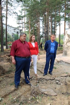 В сквере Первостроителей индивидуальный предприниматель из Иркутска проводит благоустройство по программе «Комфортная городская среда». Демонтируется старый асфальт, расширяется пешеходная зона, убирается старая облицовка с постамента, на котором установлен камень, с которого, как говорят первостроители, начался наш город.