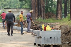 Еще один строительный объект находится в Ленинградском. Иркутская компания «РУСМВАД» приступила к благоустройству двора дома №16. Расширение и асфальтирование проезжей части, устройство автомобильных парковок, асфальтирование пешеходных дорожек и тротуаров, замена бортового камня – вот список проводимых работ.