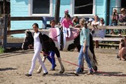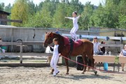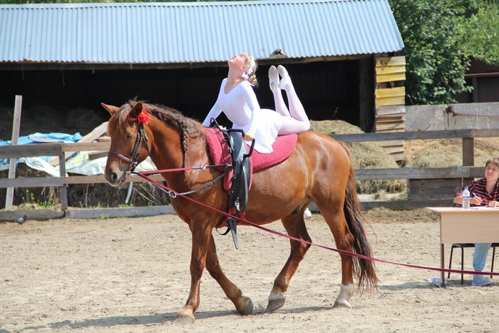 Соревнования проводились в нескольких возрастных категориях, в соответствии с классификацией, принятой во всем мире. Открыли выступление самые маленькие вольтижеры, которые на своих ногах еще не очень уверенно передвигаются, но очень достойно держатся в седле. В младшей возрастной группе выступали девчушки от 2 до 4 лет, и это поистине великолепное зрелище. Девочки выступали на лошади по кличке Ласка. Лучший результат показала Ксения Толстоброва, чуть отстала от нее Кира Толстоброва, третий результат у Арины Макаровой.