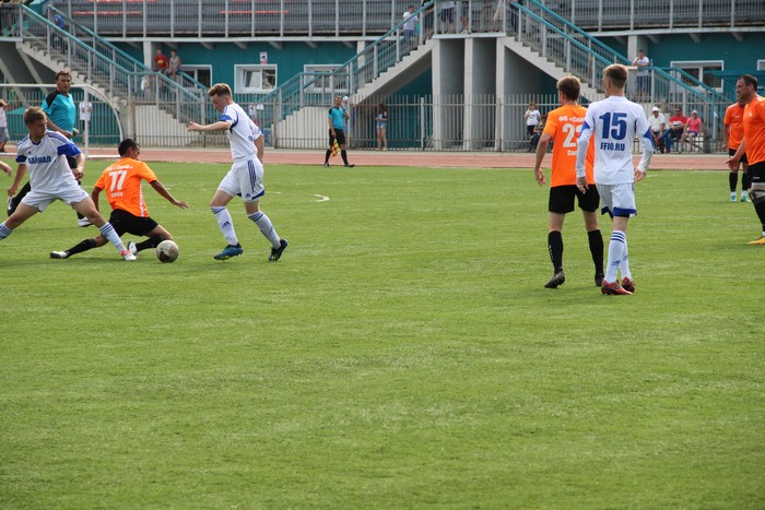 С первых минут матча игроки показывали активную игру, каждая команда стремилась к воротам соперника, но прорвать оборону удалось только «Скифу». Первый тайм закончился со счетом 2:0 в пользу хозяев поля.