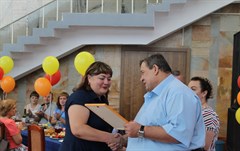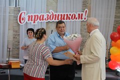 - За прошедшие пять лет строители «Восток-Центра» построили в Саянске два дома, капитально отремонтировали детский сад №10, сейчас заканчивают возведение детской школы искусств. «Восток-Центр» – единственное в области предприятие, перешагнувшее пятидесятилетний рубеж. Коллектив надежный, сплоченный, уверенный в завтрашнем дне. Мы работаем в сотрудничестве, всегда находим общий язык. Уверен, это сотрудничество будет продолжаться. От всей души поздравляю ваш коллектив, благодарю за добросовестный профессиональный труд. Особые слова благодарности – генеральному директору предприятия, не только за достижения в строительной отрасли, но и за благотворительную помощь, поддержку социальных проектов города.