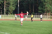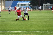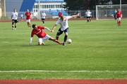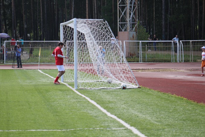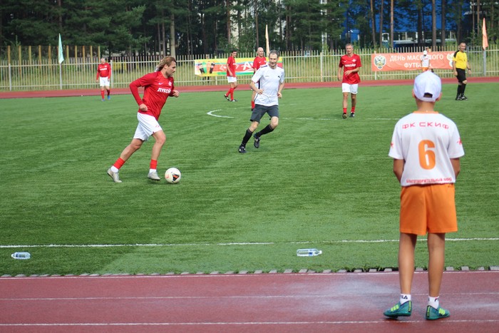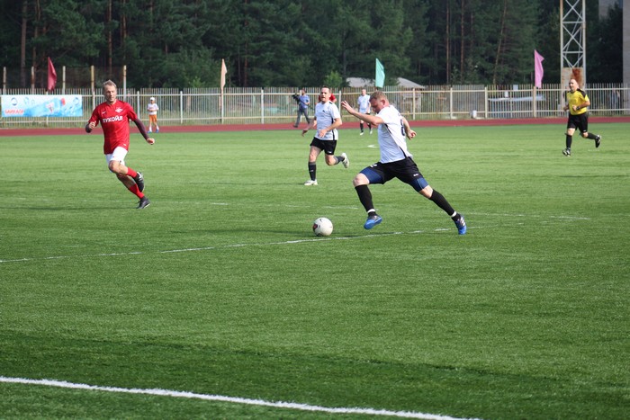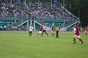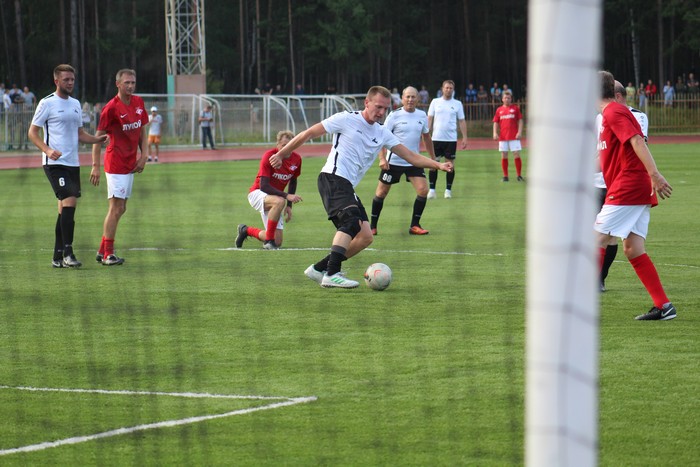 Команда именитых и титулованных футболистов из Москвы с первых минут матча взяла инициативу в свои руки и на тринадцатой минуте матча штурмом взяли ворота «Скифа».