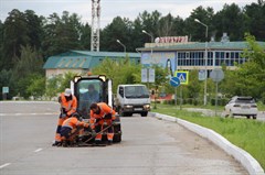 В настоящее время ремонтируются выезд и въезд в город, и улица Таежная. По технологическим требованиям, ремонт начинается с демонтажа поврежденного слоя асфальтового покрытия. Сейчас рабочие «лечат» улицу Таежную. Здесь уже убрано 320 квадратных метров старого асфальта. Подготовив должным образом полотно, подрядчик приступит к асфальтированию.