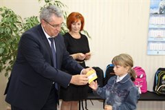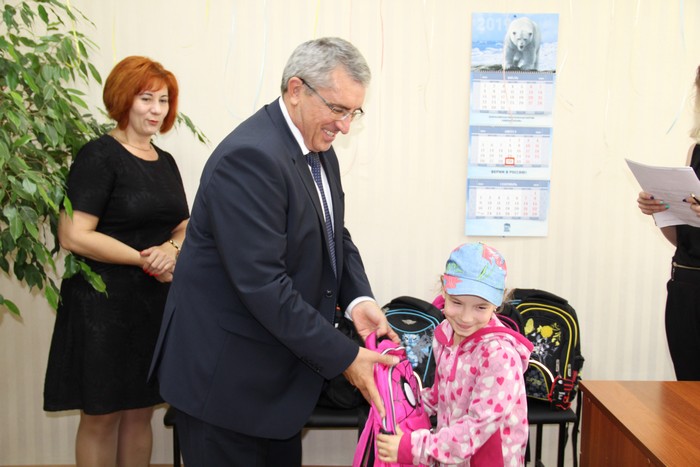− Надеемся, что с такими портфелями вы будете учиться только на пятерки и четверки, слушаться учителей, принимать активное участие в жизни класса и школы и не огорчать своих родителей, − сказал, приветствуя ребят и их родителей Александр Ермаков.