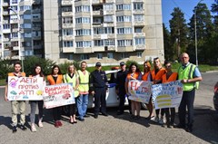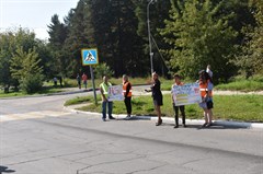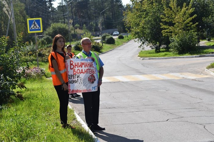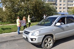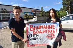 Волонтеры школы № 7 совместно с молодогвардейцами вышли к пешеходному переходу на одной из улиц Саянска с плакатами, призывающими водителей к внимательности. Акция не осталась незамеченной – водители замедляли движение, слушали информацию, читали плакаты. «Не гоните, водители! Ведь вы тоже родители! » − хочется, чтобы эти фразы, написанные детскими руками, оставили след в памяти участников дорожного движения.